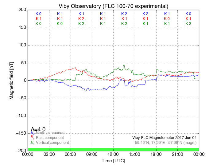 Magnetometer Viby Viby (Sollentuna), Sweden · geographic coordinates: 59°27' N 17°54 E · geomagnetic coordinates (2017): 57.69°N, 106.22°E |