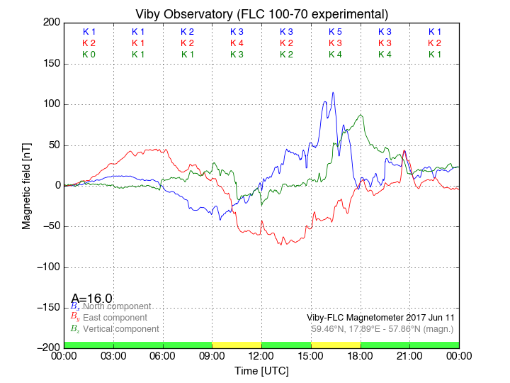 Magnetometer Viby Viby (Sollentuna), Sweden · geographic coordinates: 59°27' N 17°54 E · geomagnetic coordinates (2017): 57.69°N, 106.22°E |