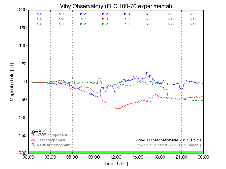 Magnetometer Viby Viby (Sollentuna), Sweden · geographic coordinates: 59°27' N 17°54 E · geomagnetic coordinates (2017): 57.69°N, 106.22°E |