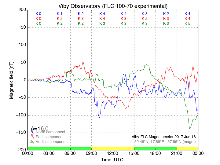 Magnetometer Viby Viby (Sollentuna), Sweden · geographic coordinates: 59°27' N 17°54 E · geomagnetic coordinates (2017): 57.69°N, 106.22°E |
