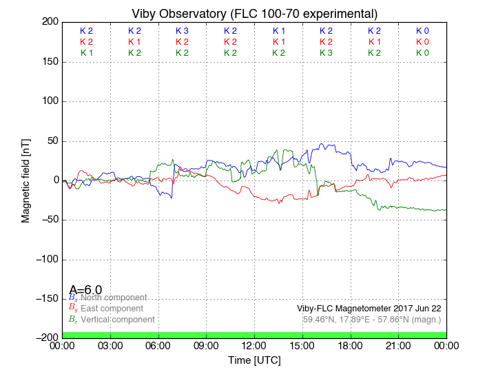 Magnetometer Viby Viby (Sollentuna), Sweden · geographic coordinates: 59°27' N 17°54 E · geomagnetic coordinates (2017): 57.69°N, 106.22°E |
