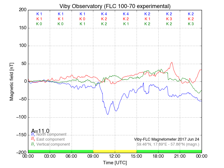 Magnetometer Viby Viby (Sollentuna), Sweden · geographic coordinates: 59°27' N 17°54 E · geomagnetic coordinates (2017): 57.69°N, 106.22°E |