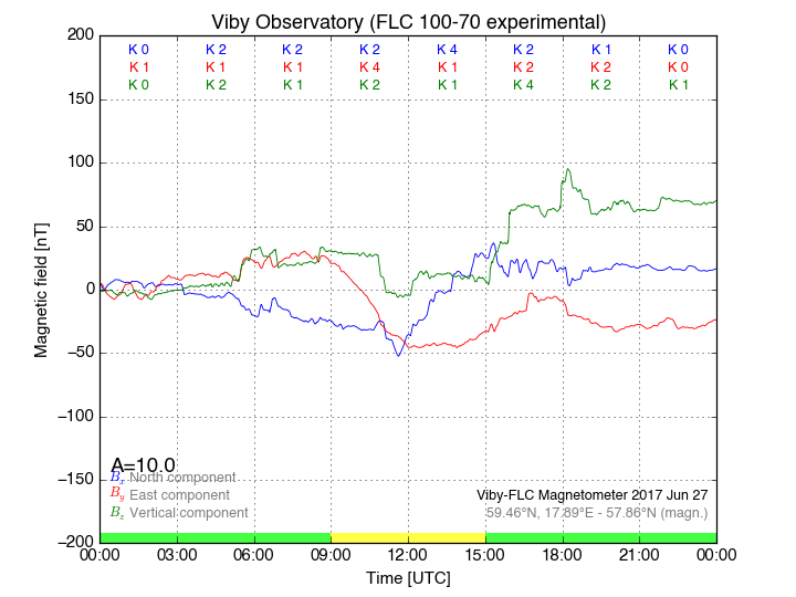 Magnetometer Viby Viby (Sollentuna), Sweden · geographic coordinates: 59°27' N 17°54 E · geomagnetic coordinates (2017): 57.69°N, 106.22°E |