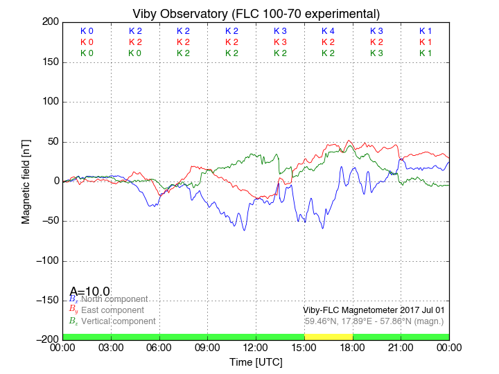 Magnetometer Viby Viby (Sollentuna), Sweden · geographic coordinates: 59°27' N 17°54 E · geomagnetic coordinates (2017): 57.69°N, 106.22°E |