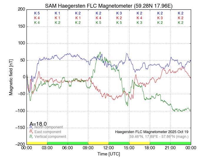 Magnetometer Viby Viby (Sollentuna), Sweden · geographic coordinates: 59°27' N 17°54 E · geomagnetic coordinates (2017): 57.69°N, 106.22°E |