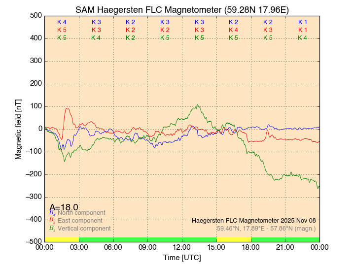Magnetometer Viby Viby (Sollentuna), Sweden · geographic coordinates: 59°27' N 17°54 E · geomagnetic coordinates (2017): 57.69°N, 106.22°E |