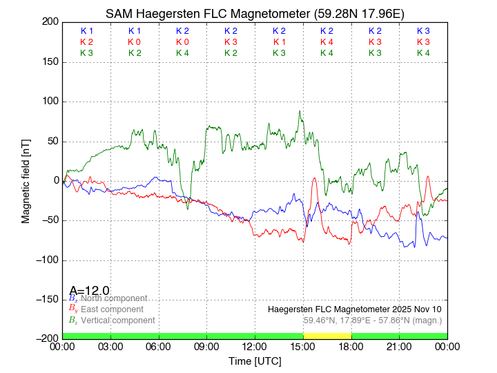 Magnetometer Viby Viby (Sollentuna), Sweden · geographic coordinates: 59°27' N 17°54 E · geomagnetic coordinates (2017): 57.69°N, 106.22°E |