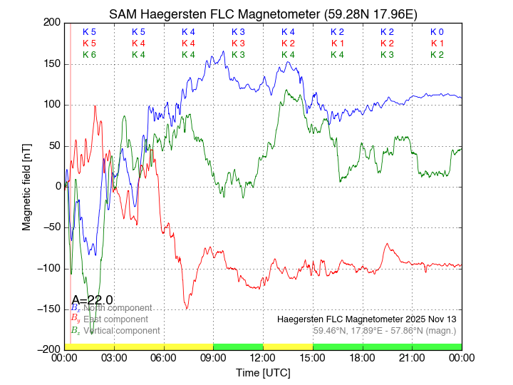 Magnetometer Viby Viby (Sollentuna), Sweden · geographic coordinates: 59°27' N 17°54 E · geomagnetic coordinates (2017): 57.69°N, 106.22°E |